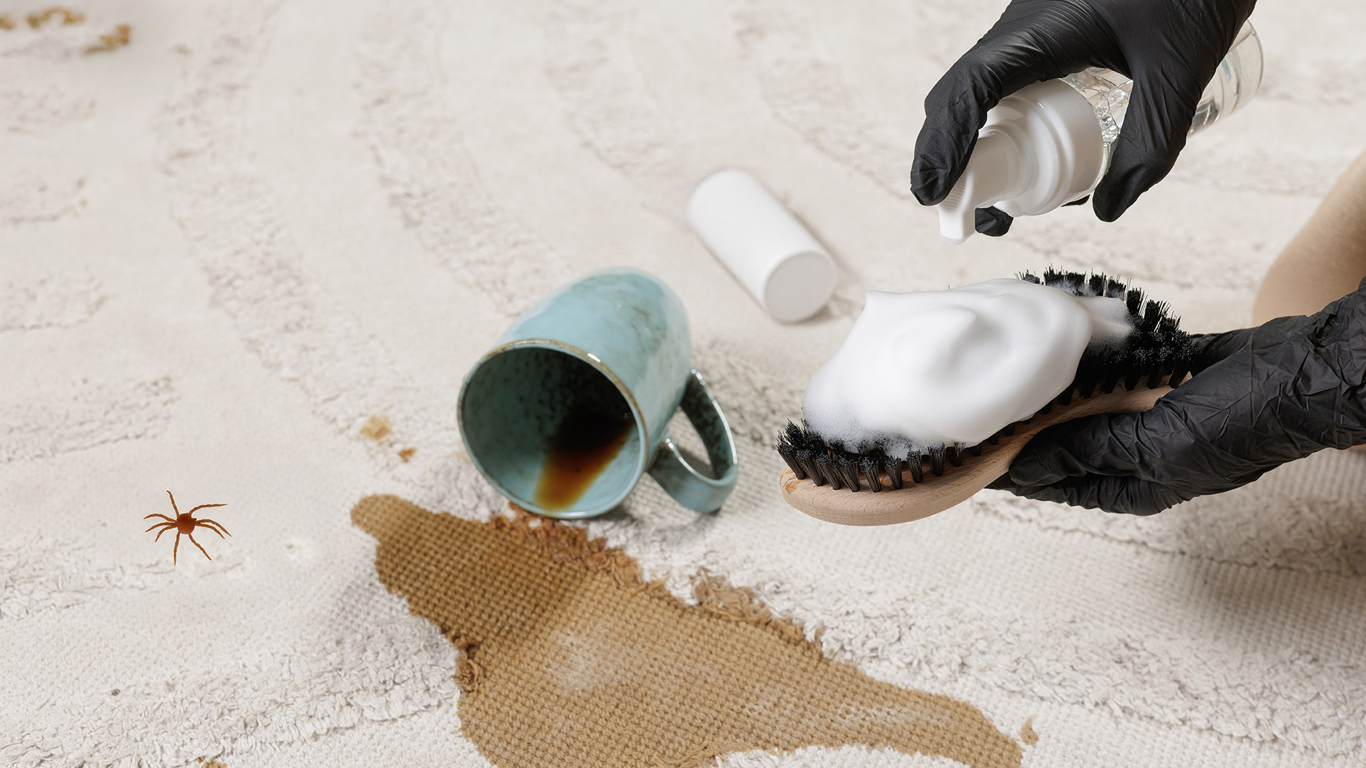 Pre-tratamiento localizado con enzimas biodegradables para café/tinta/orina. Neutralizador de olores moleculares penetra base moqueta eliminando focos bacterianos. 98% eficacia certificada EN1276.